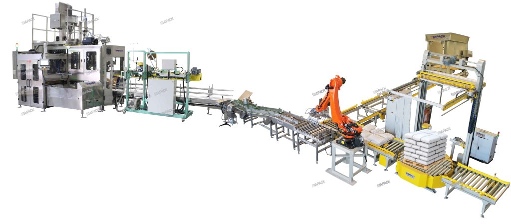 இந்த வரிசையானது, மொத்தப் பொடியை 15-25 கிலோ கார்ஃப்ட் பேப்பர் பையில் நிரப்பி, பின்னர் பையை சீல் செய்வதற்கான சிறப்பு வடிவமைப்பாகும். வாடிக்கையாளர் தேவைக்கேற்ப, தானியங்கி எடை சரிபார்ப்பு, உலோகக் கண்டுபிடிப்பான் மற்றும் பலேடைசிங் ஆகியவற்றையும் நாங்கள் வழங்க வேண்டும். விற்பனையாளர் உற்பத்தி வரிசையின் வடிவமைப்பு, உற்பத்தி மற்றும் விநியோகத்தை தொழில்நுட்பத் தேவைகளுக்கு இணங்கவும், சர்க்கரைத் துறையில் அதன் சொந்த பேக்கேஜிங் வரி வடிவமைப்பு அனுபவத்துடன் இணைந்தும் முடித்தார்.