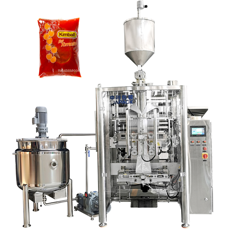 தானாக அளவிடும் அளவை, பைகள், நிரப்புதல், சீல் செய்தல், வெட்டுதல், நிறைய எண்ணை அச்சிடுதல் மற்றும் எளிதில் கிழித்துப் பார்க்காத வெட்டுகளை வெட்டுதல், முடிந்த தயாரிப்பு வழங்குதல். திரவ உற்பத்தியைப் பயன்படுத்துதல்.