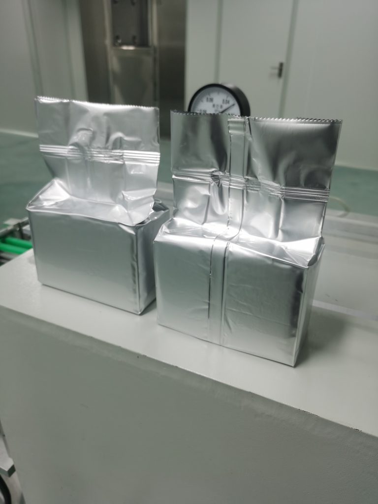 ரோலர் ஃபிலிம் மூலம் பையை உருவாக்கும் VFFS பேக்கிங் இயந்திரம் - எடையிடும் இயந்திரம் எடை மற்றும் நிரப்பும் தயாரிப்பு வெற்றிட அறை --- வெற்றிடமிடுதல் மற்றும் இறுதி சீல் செய்தல் --முடிக்கப்பட்ட பை வெளியீடு மற்றும் பையின் மேற்புறத்தை ஒழுங்கமைத்தல் --- முடிக்கப்பட்ட பை வெளியீடு