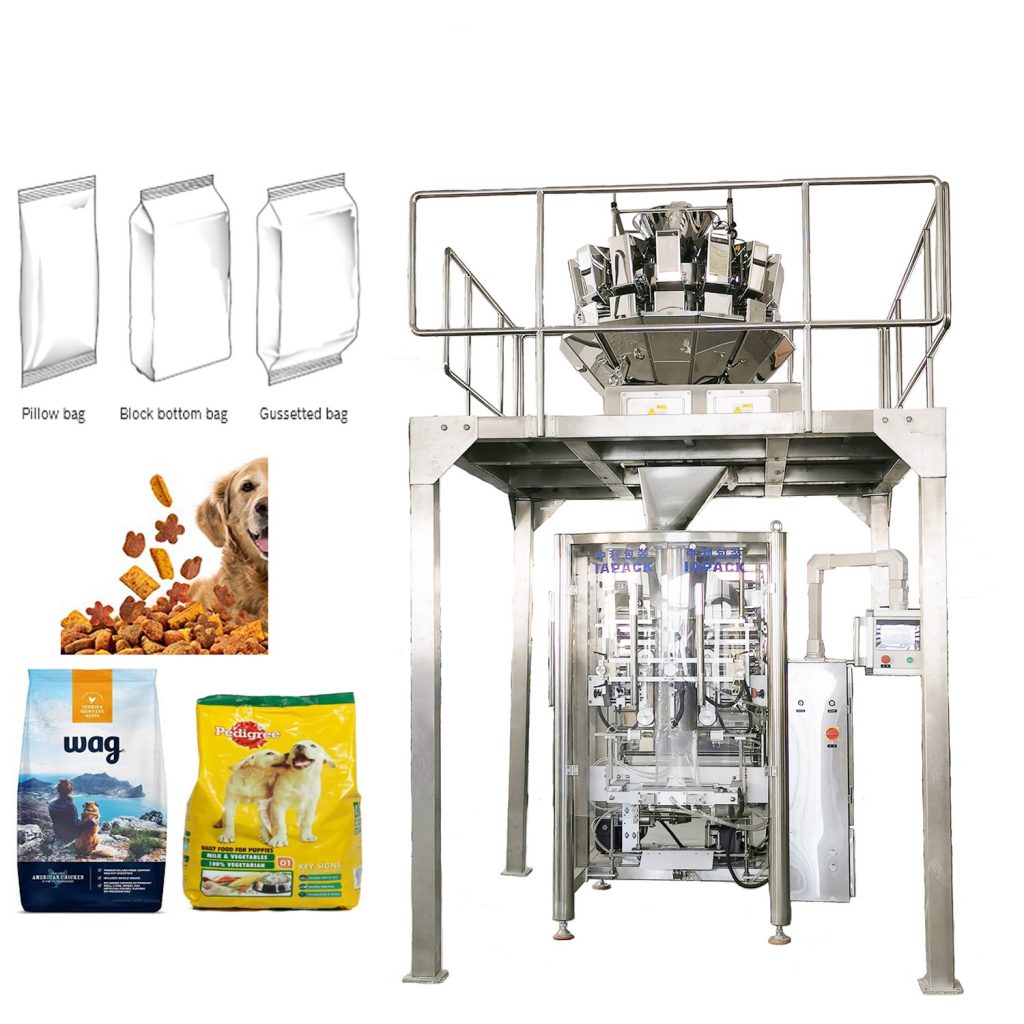 இந்த இயந்திர அலகு ஒரு VFFS520 தானியங்கி செங்குத்து பேக்கேஜிங் இயந்திரம், ஒரு ZR14-1.6L பல தலை எடையுள்ள இயந்திரம், ஒரு DT5 பக்கெட் லிஃப்ட் ஆகியவற்றைக் கொண்டுள்ளது. பொருள் உணவு, எடை, பை தயாரித்தல், நிரப்புதல், பேக்கேஜிங், அச்சிடுதல், வெட்டுதல் போன்றவற்றின் செயல்பாடுகளை அது தானாகவே உணர முடியும்.