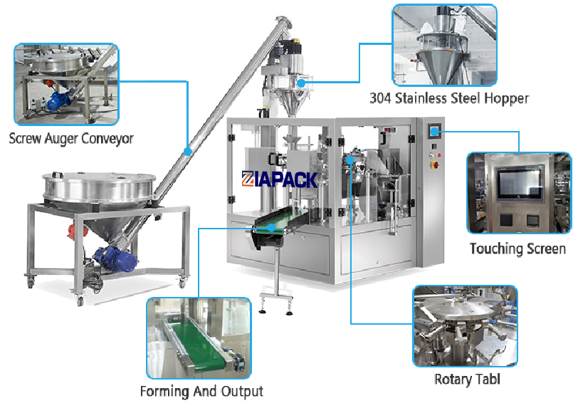 This machine can autoamtic take the bag ,open the bag ,fill the material and seal the bag .Widely used for packaging different powder material .