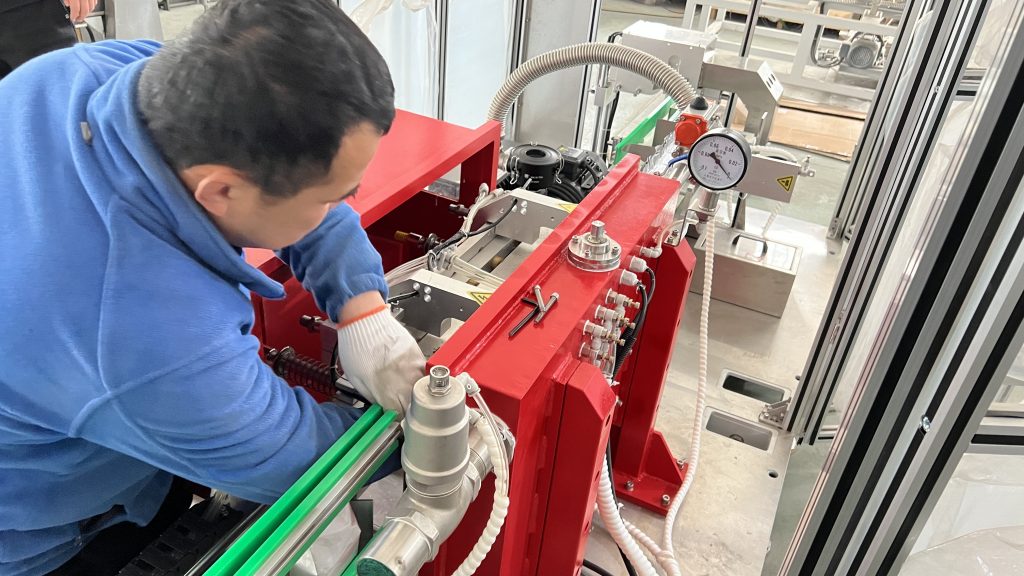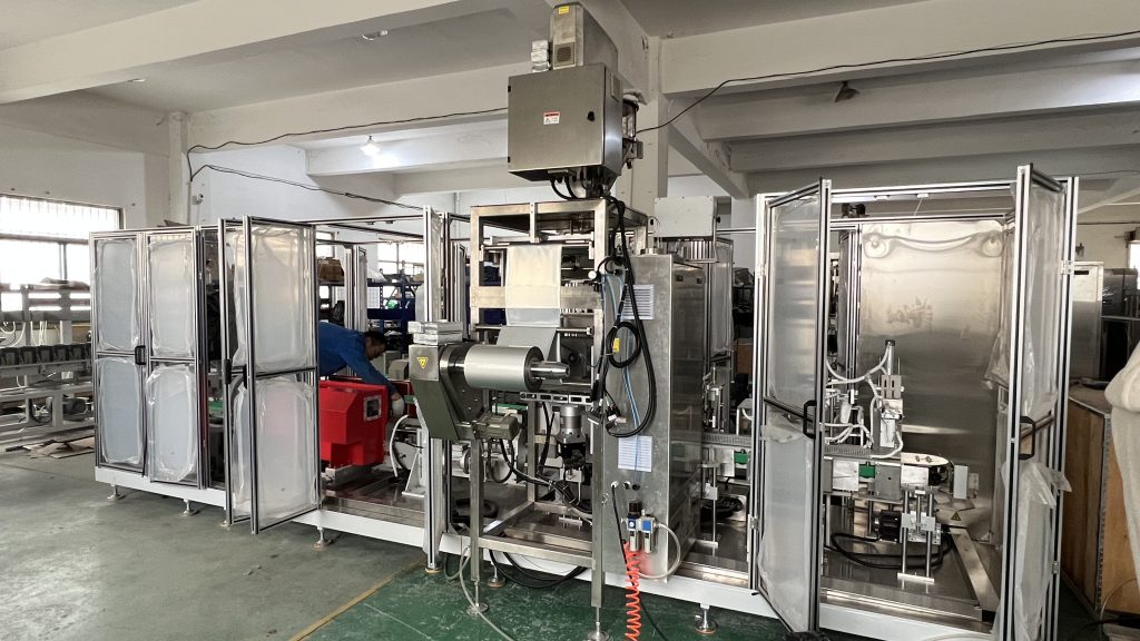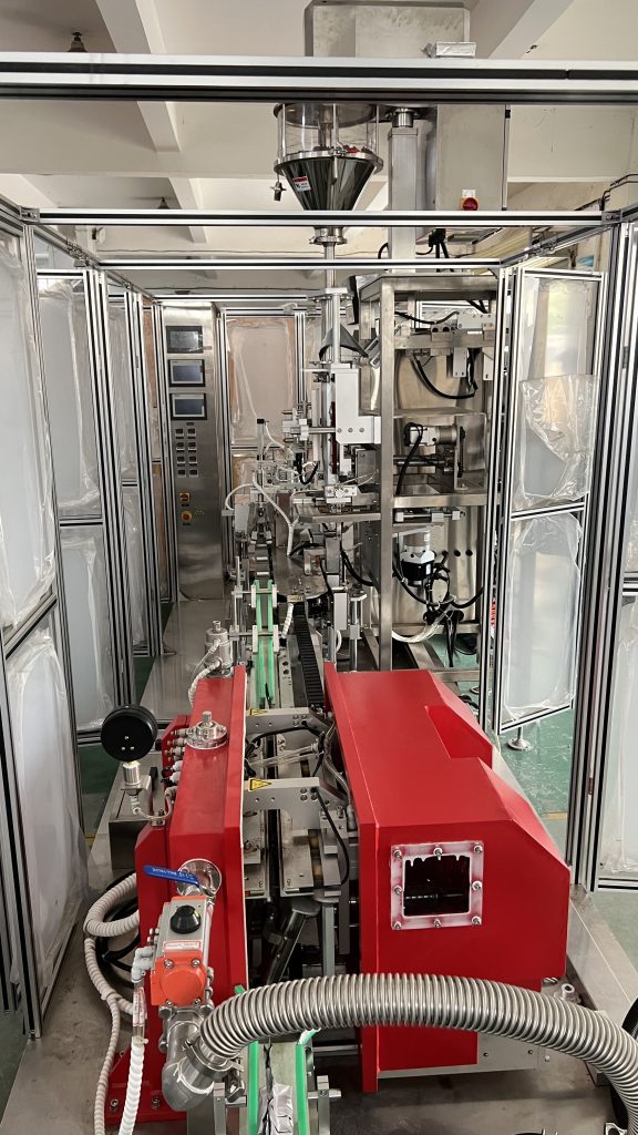 ஈரானைச் சேர்ந்த எங்கள் வாடிக்கையாளர் 250 கிராம் காபி பொடிக்கு ஒரு செட் தானியங்கி செங்கல் வெற்றிட பையை உருவாக்கும் நிரப்பு பேக்கேஜிங் இயந்திரத்தை ஆர்டர் செய்திருந்தார். மேலும் வாடிக்கையாளரின் தேவையைப் பின்பற்றி, வெற்றிட அறையை எச்சரிக்கையாக சிவப்பு நிறத்தில் வரைந்தோம்.